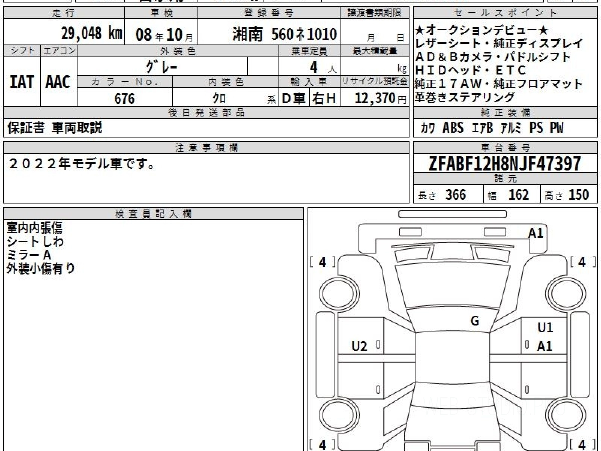Купить ФИАТ 2021 года выпуска можно под заказ с аукционов Японии с доставкой в Омск или любой другой город России.