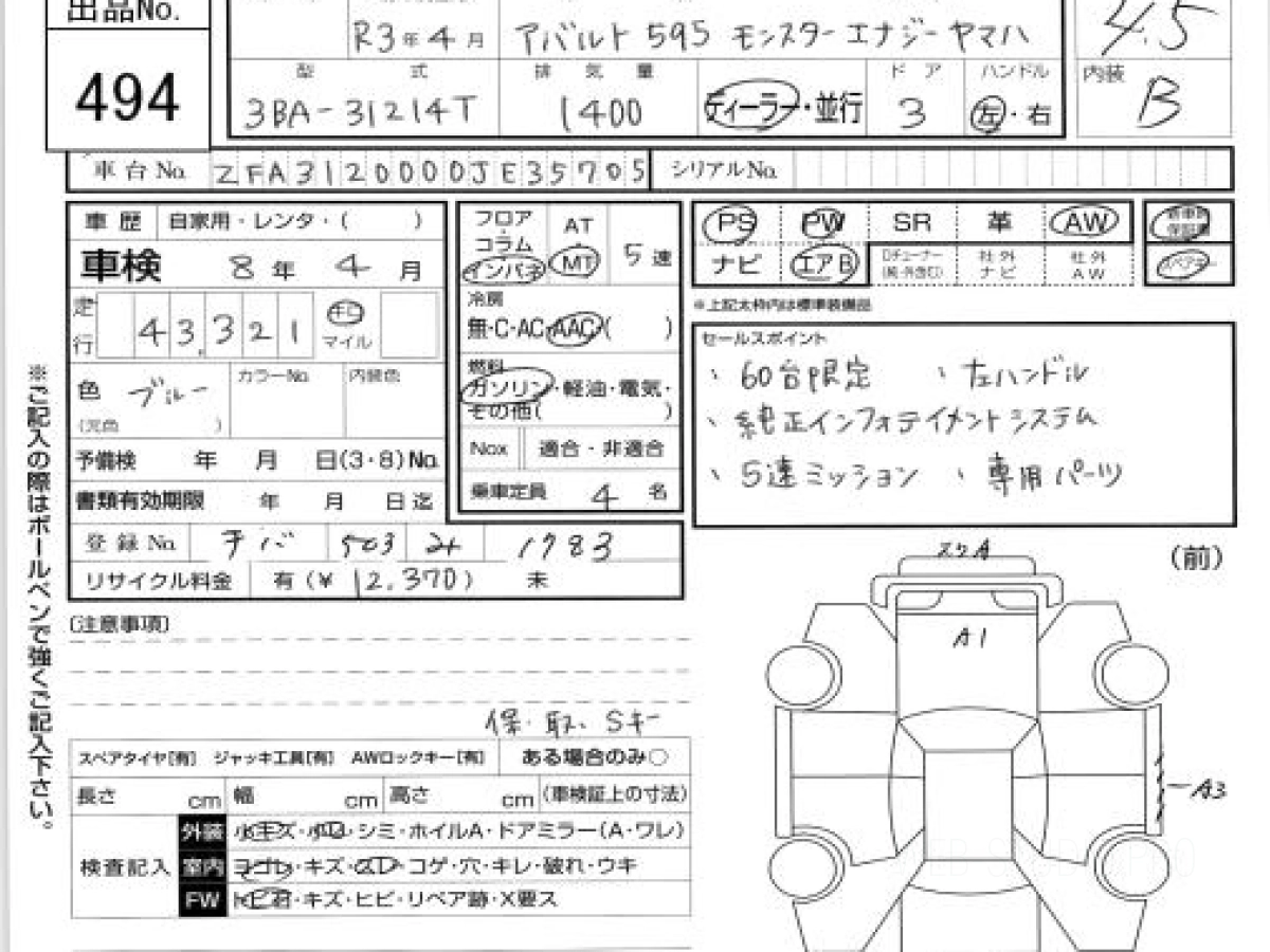 Покупка автомобиля через японский аукцион – это возможность получить авто в отличном состоянии, с прозрачной историей и минимальным пробегом. FIAT OTHER 31214T 595 Star --A 2021 года – это яркий пример надежного и экономичного японского автомобиля, идеально подходящего для эксплуатации в российских условиях.